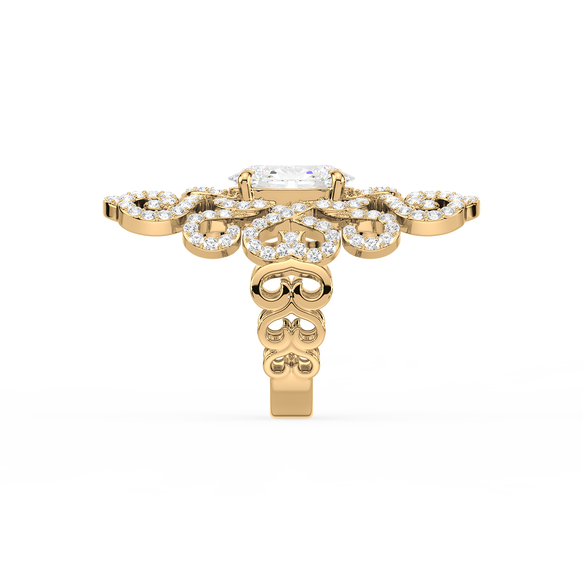 Ornate Oval Diamond Ring made with 5.13 ct lab grown diamonds in 12.80 grams of 18k gold.