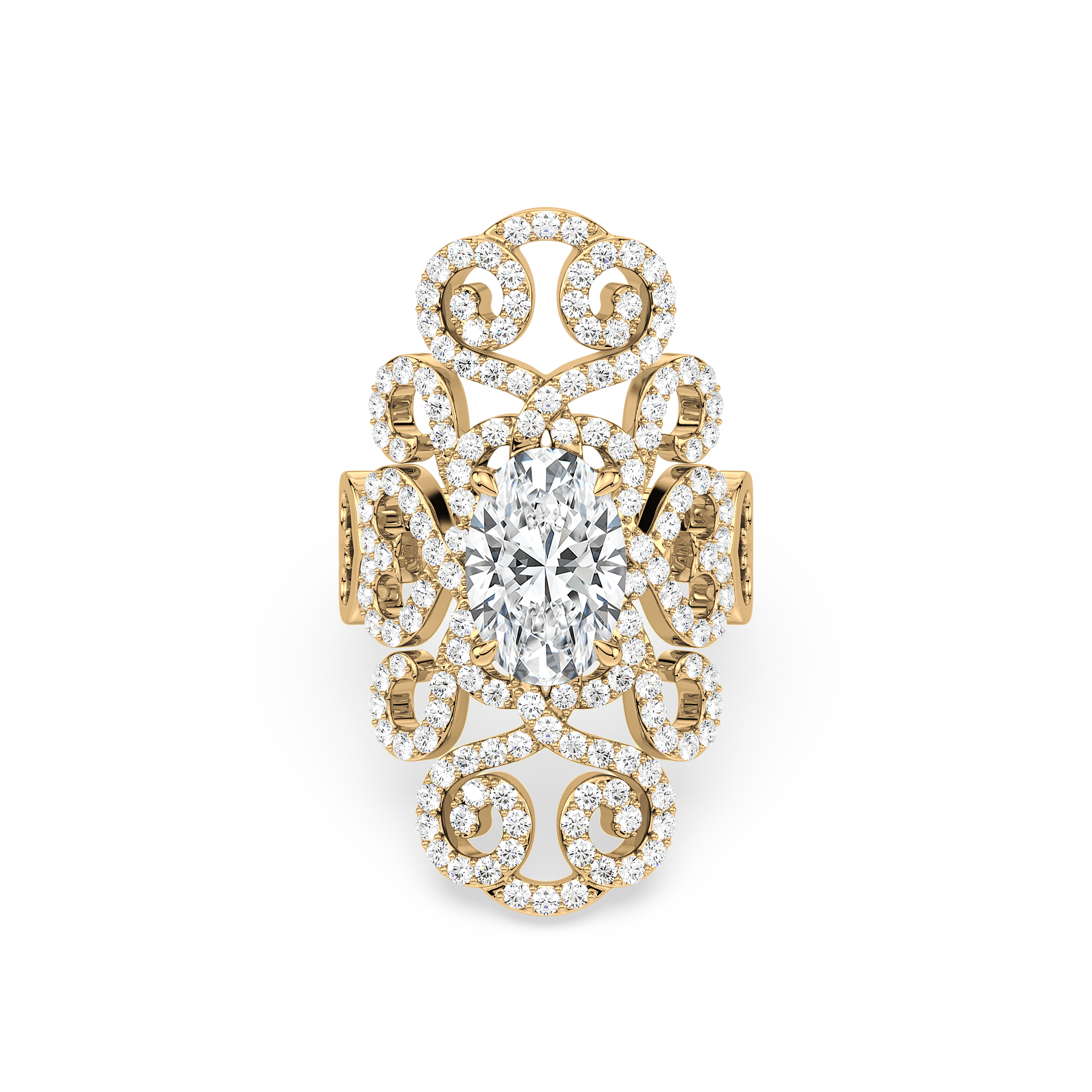 An ornate oval diamond ring with vintage-inspired detail, radiant sparkle, and master craftsmanship, designed to captivate for a lifetime forever.